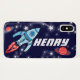 Capas de iphone legal do foguete de espaço. Personalize com nome da sua criança até 5 letras. Este exemplo lê Henry. Projetado exclusivamente e ilustrado por Sarah Trett. www.sarahtrett.com