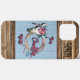 Personalize esta capas de iphone única de "Um tipo" de vaqueira. Ele apresenta um crânio de vaca aninhado em flores e penas cor-de-rosa e púrpura, com uma corda em fundo azul, bordas de madeira castanho estressadas e a citação... "Sou o País Y'all"! Design de Arte Original do Artista Kerry Miller.