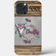Personalize esta capas de iphone única de "Um tipo" de vaqueira. Apresenta um crânio de vaca aninhado em flores e penas cor-de-rosa e púrpura, com corda no fundo de couro prateado, bordas de madeira estressadas castanhas e a citação... "Sou o País Y'all"! Design de Arte Original do Artista Kerry Miller.