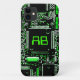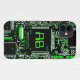 Design com um fecho de um conselho de circuito do computador em verde e preto. Um design personalizável para você personalizar com seu próprio texto, imagens e ideias. Imagem criada com fotografia original e técnicas digitais e impressa sobre fundo plástico duro