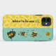 Felizes abelhas amarelas, voando sobre o pente de mel, abelhas amarelas doces e negras em fundo verde com design para o pente de mel amarelo. Personalizar editando o texto ou excluindo o texto.
