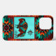 Esta é uma única capas de iphone de células de Buffalo do Sudoeste. Ele apresenta um búfalo sudoeste ou uma Silhueta Bison em um fundo Turquesa...Cercada por uma borda sudoeste em Turquesa, Laranja e Preto Escuro! Este é um Design de Arte Gráfica Original criado pelo Artista Kerry Miller.