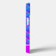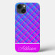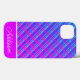 Esta capas de iphone apresenta um padrão de xadrez de gradiente azul e roxo com uma faixa grossa roxa e faixa fina branca com um nome personalizável.