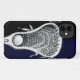 Capa de telefone de Lacrosse com uma ilustração de lax stick em fundo marinho-azul e preto.