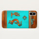 Personalize esta única capas de iphone de células do sudoeste de Kokopelli! Ele apresenta um Cobre no Sudoeste de Kokopelli tocando flauta e dançando em volta de um cacto debaixo do Sol...em um fundo de turquesa... cercado por uma borda de cobre!! Design De Arte Original Pelo Artista Kerry Miller.