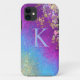 Esta capa de telefone de célula única apresenta um fundo de brilho roxo elétrico azul e lavanda, com poeira de ouro. Adicione um monograma para personalizá-lo. Faz um presente de excelente. Criado pela imprensa simplesmente de farmácia.