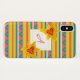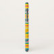 Mala de monograma elegante com tiras e triângulos fundo colorido e flores amarelas.