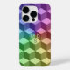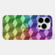 Uma capa de telefone brilhante e colorida com um padrão de cubo isométrico geométrico e espaço para as suas iniciais