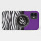 capas de iphone B do Monograma de Impressão da Zebra Roxo e Negra: Use esta capas de iphone adorável e moderna para proteger o seu telefone de uma maneira elegante. Use o prompt para alterar o monograma. Se você quiser mudar o gráfico, por favor, entre em contato comigo pela minha loja e eu vou ajudar. AntiqueChandelier© http://www.antiquechandelier.ca