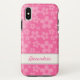 Personalize esta capa de telefone Case-Mate com seu nome ou monograma. Basta editar com o botão "personalizar" fácil e selecionar o modelo do dispositivo no menu suspenso. Criado com um simples design de flores cor-de-rosa com uma área de texto rosa e branco em contraste.