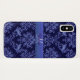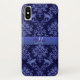 capas de iphone do Monograma Vintage Blue Damask. Um visual elegante e antigo para decorar e proteger seu novo telefone favorito. Preencha seu nome e inicial no prompt para personalizar e personalizar de qualquer maneira que você quiser.