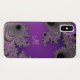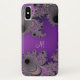 Caixa roxa Pearlescent do iPhone X do monograma do Fractal. Roxo e preto violeta, misturado com prata, ouro e lavanda, caso do design do fractal de Mandelbrot. Preencha sua inicial no alerta para personalizar e para personalizá-lo de qualquer maneira goste.