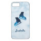 capa de telefone personalizada de patinagem de gelo azul escuro para patinadores de figuras (meninas e meninos) - para carregar de sua paixão em todos os lugares.Cores: Estrelas azuis escuras sobre fundo de gelo azul claro.Design: Par de skates numéricos + personalize com o nome da patinadora de gelo.