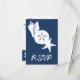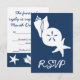 Esta doce placa RSVP apresenta um fundo azul marinho e um dólar branco de areia flanqueado por uma concha e estrelas-do-mar na frente. Uma borda de marinho ao longo da borda inferior da placa com um padrão branco de conchas e estrelas-do-mar decora o dorso com algum texto de amostra colocado acima que pode ser personalizado para ajustado de suas necessidades. Verifique os outros produtos no conjunto de Marinhos da Summer Seashells para criar uma pesquisa verdadeiramente coordenada do seu evento.