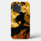 Este "iPhone 13 Pro Case" é projetado para o Dia de Celebração do "Feliz Dia das Bruxas", por meio da colocação do "Night Watch" artístico, bruxa voando sobre o "Broom-Stick" na Noite de Moon do cheio.