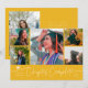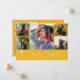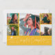 Cartão de anúncio de formatura moderno e simples com foto, apresentando 5 fotos na frente e 1 no verso. O texto manuscrito diz "Capítulo Concluído". Adicione o nome do formando, informações e mensagem para personalizar este cartão. Cor amarela.