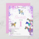Um belo convite orçamental à festa de aniversário de animais de criação, com cabras e cabras de bebê em cabra. Tire a festa de primeiro aniversario do seu filho para um excelente começando com esta adorável coleção de ilustrações coloridas de cabra d'água em rosa vibrante, roxo, azul, laranja, amarelo e aqua. Este convite de festas divertido é fácil de personalizar para criar um convite de festas único adequado para crianças e amantes adultos de cabras. Exemplares originais de cabra psicodélica rosa colorida da artista Catherine Sweetman