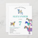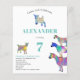 Convite de aniversário muito divertido de criança com ilustrações coloridas de cabra de aquarela em rosa, roxo, azul, laranja, amarelo e aqua vibrantes para deleitar qualquer criança que ama animais. Um 7 convite de aniversário de animais de criação bonitinho com cabras e cabras bebês em cabras. Este convite de festas divertido é fácil de personalizar para criar um convite de festas único adequado para crianças e amantes adultos de cabras. Ilustrações originais de cabra psicodélica colorida da artista Catherine Sweetman