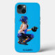 Softball Catcher e Estádio pintando jovem linda garota de uniforme esportivo azul. Perfeito para jogadores de softball e fãs. Você pode personalizá-lo com seu nome ou deixá-lo vazio