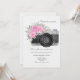 Um convite para aquarelas com uma câmera embelezada por um aglomerado de flores cor-de-rosa. Perfeito para aniversários, graduações e muito mais. (Vetor criado por orquidart - www.freepik.com).