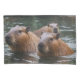 Pictured Are Three Capybara's Swimming In The River.