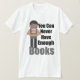 Design gráfico de uma cara com uma pilha de livros da artista/designer Charmaine Paulson em uma camiseta masculina. O texto diz: "Você nunca pode ter livros suficientes".