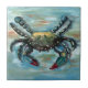 "Blue Crab on Blue" foi criado com tinta acrílica em um painel de madeira.