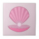 Este incrível azulejo apresenta uma bonito casca rosa aberta com uma pérola rosa pálida brilhante sentada dentro num fundo cintilante. Um design excelente para celebrar uma menina.