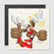 Engraçado Personagem de desenho animado de Reinado de Natal, Olhando muito Bebado e grogue, depois da Festa, com ainda um Vidro com Champagne na sua pata e com o polegar para cima. Arte Gráfica Original Copyright BluedarkArt The ChameleonArt.