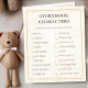 CHAVE DE RESPOSTA: 1. b 2. j 3. d 4. k 5. h 6. e 7. c 8. g 9. f 10. a Traga um toque de charme literário para o seu chá de fraldas do "Nosso Próximo Capítulo" ou do livro de histórias com este jogo de Caracteres de Histórias! Este jogo impresso pronto para uso desafia os convidados a combinar personagens amados com o livro de histórias a que pertencem — perfeito para vincular sua celebração a um tema "Novo capítulo começa". Dos contos clássicos de fadas aos favoritos das crianças eternos, os convidados se divertirão relembrando as histórias com que cresceram enquanto fazeres novas memórias para o pequeno a caminho. É uma atividade lúdica e interativa que funciona para convidados de todas as idades e faz a adição perfeita ao entretenimento do seu chá. Como funciona: cada convidado recebe um cartão de jogo bem impresso. Basta combinar cada caractere com o título correto do storybook. Jogue casualmente como os convidados se misturam ou marque um temporizador para uma competição viva. A pessoa com as respostas mais corretas ganha um prêmio! Por que você vai adorar: - Combinação perfeita para o nosso próximo capítulo, Era uma vez, ou chás com tema de livro - Chegam impressos e prontos para uso - não é necessário fazer download ou imprimir - Impressão de alta qualidade - Fácil e divertido para todas as idades - Um maravilhoso quebra-gelos e início de conversas Com este jogo, você vai adicionar risos, nostalgia e um traço de competição amigável para seu chá de fraldas — comemorando a mágica livros de histórias e o início da própria história do bebê.