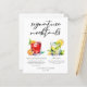 Esta folha de menu de drinks sem álcool apresenta 2 desenhos fofos de bebidas não alcoólicas e seus ingredientes para o bar do seu casamento. Um Negroni (nogroni) e Mint Julep adicionam um toque legal ao menu do seu bar. Completo com os nomes do casal e data da recepção.