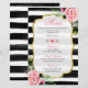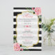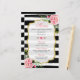 Modelo de Cartão de Menu de Almoço para Chá de Noiva Elegante Listras Florais.