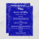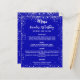 Um fundo azul real. Texto branco. Decorado com falso brilho prateado, faíscas. Frente: personalize e adicione seu nome, data e menu. Adicione sua própria foto e fatos divertidos sobre a garota de aniversário. Remova os nomes se não for necessário. 1 folha = 1 menu impresso borda a borda.
