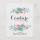 Elegante buquê floral colorido com flores rosa e verde sobre fundo de damasco branco.