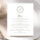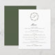 Este elegante cardápio de casamento apresenta uma inicial de monograma em letra cursiva clássica emoldurada por uma grinalda de folhagens em arte linear verde oliva. Substitua o texto de exemplo verde oliva pelos detalhes do cardápio do seu casamento. O verso é verde oliva sólido.