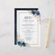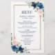 Lindo cardápio de casamento geométrico boho moderno floral apresenta gráficos de flores em aquarela pintados à mão / rosas em tons ricos de azul naval e rosa beije com moldura dourada. Entre em contato comigo para qualquer ajuda na personalização ou se você precisar de qualquer outro produto com este design.