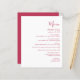 Este simples cardápio de casamento moderno apresenta texto magenta em um fundo branco. A palavra "Cardápio" aparece em caligrafia elegante à mão. Adicione o nome do casal e a data do casamento em letra de forma e itálico, junto com os detalhes do cardápio em fonte sans serif. O verso é uma tonalidade correspondente de magenta sólido.