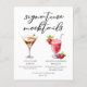 Este cardápio de drinks sem álcool exclusivos de sobremesa apresenta 2 bebidas não alcoólicas fofas e seus ingredientes para sua festa ou bar de casamento. Um Martini de Chocolate e Daiquiri de Morango Virgem desenhados acima do seu texto de evento personalizado.