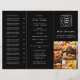 Mostre seus pratos com este menu de fotos de restaurante preto moderno, projetado para entrega, retirada ou serviços de catering. Personalize com o nome do seu restaurante, fotos de comida e logotipo para criar um cardápio elegante e profissional que seus clientes vão adorar. Perfeito para restaurantes modernos, cafés e empresas de alimentos.
