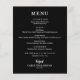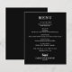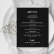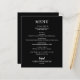 Um cartão de cardápio de jantar em preto apresenta seu cardápio em letras brancas elegantes. Perfeito para um casamento moderno, jantar de ensaio de casamento, festa de aniversário ou qualquer evento especial com jantar sentado. ESCOLHA QUALQUER COR DE FUNDO, QUALQUER COR DE TEXTO, QUALQUER FONTE! Personalize facilmente com o seu cardápio de jantar e detalhes.