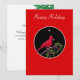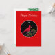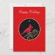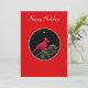 Lindo cardeal e estrela em preto e vermelho no cartão de Natal. Todo o texto está pronto para ser personalizado.