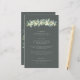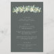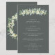Um cardápio de casamento de três pratos em verde cinza escuro, apresentando uma guirlanda de snowberries pintadas à mão e eucalipto na frente e uma coroa na parte de trás. Todo o texto é totalmente editável, e os pontos espalhados na frente e no verso podem ser excluídos antes de encomendar, se preferir. Por favor, visualize esta Coleção na minha loja para cardápios com arranjos florais alternativos, um número diferente de pratos e em diferentes tamanhos/cores/formatos. Itens coordenados também disponíveis.