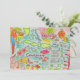 Wonderfully colorful illustrated map of the Caribbean Islands repurposed on a 5x7 postcard.
