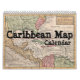 Este é um calendário que mostra vários mapas do Caribe.