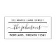 Carimbo de Borracha do Script de Caligrafia Trendy com sobrenome entre duas linhas. É fácil personalizar; perfeito para casais, casamentos e recém-casados. Agora você nunca mais precisa escrever seu endereço de novo. Personalize-o substituindo o texto do marcador de posição pelo seu nome e endereço. Para obter mais opções, como alterar a fonte, seu tamanho, espaçamento entre letras ou espaçamento de linha, clique no botão "Personalizar". *Observe que a Marca d'água do Zazzle que aparece na visualização de zoom NÃO aparecerá no produto impresso final. © Rosewood e Citrus