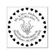 Este selo redondo apresenta um círculo decorativo de corações moldando todo o design. O nome é exibido em uma curva suave no topo, seguida do número de telefone diretamente abaixo dele. No centro, um gráfico de polvo adiciona um toque charmoso e pessoal. O endereço é elegantemente curvo ao redor do fundo em duas linhas separadas, completando o design circular.