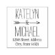 Na moda e design de seta para um casal com texto de endereço de retorno personalizado.