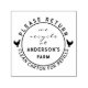 Este selo de devolução de caixa de ovo redondo moderno irá certamente facilitar a sua vida! Este carimbo de autoimpressão apresenta uma estrutura redonda com texto à sua volta numa mistura de fontes rústicas: por favor devolva uma caixa limpa para reabastecer. Nas laterais, entre o texto, há duas silhuetas bonitinhas de galinhas. Dentro há texto personalizado na caligrafia manuscrita moderna e fonte russa. Diz: "Nós reciclares na Fazenda do Anderson". Você pode personalizar facilmente este carimbo clicando no botão "Personalizar este modelo". E veja designs de fazenda mais únicas na minha coleção de Carimbos de Fazenda!