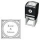 Stamp with effortless, Art Deco elegance using this custom self-inking rubber stamp. The bold geometric border, with its signature fan patterns and linear symmetry, beautifully frames your personalized names (e.g., Katie & Mateo) and address. This efficient stamp delivers thousands of consistently clear, stylish impressions, making it ideal for quickly personalizing envelopes, invitations, and business mail. It combines the undeniable charm of the Jazz Age with modern convenience, adding a distinctive, sophisticated touch to all your communications. A practical and highly fashionable tool for busy couples, event planners, or a thoughtful gift for new homes and stylish endeavors.