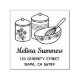 Um par de latas de farinha e açúcar ornamentadas com uma tigela de mistura e uma batedeira. Personalize com o seu próprio endereço.